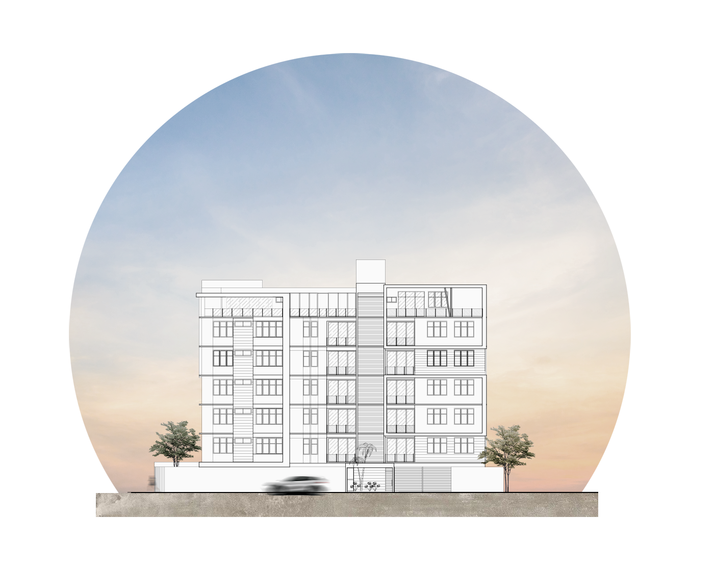 Al ingresar al edificio, se encuentra un bloque integrador que alberga las circulaciones verticales y la recepción. Este núcleo central actúa como el eje generador de los tres bloques de apartamentos, facilitando el acceso y la conexión entre las diferentes áreas del edificio.