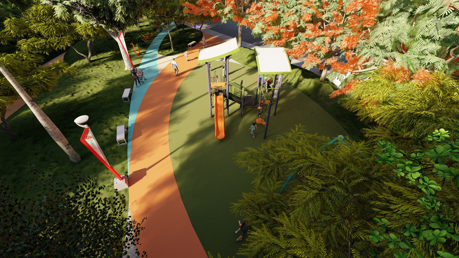 El proyecto del Parque Villa María, ubicado en el residencial Villa María unos de los sectores más privilegiados de la ciudad. Este proyecto fue concebido especialmente para atender las necesidades de personas con discapacidad, se erige en un terreno de peculiar configuración triangular, mayormente delineado por una Cañada en la parte posterior del mismo. La vegetación se conforma principalmente por flamboyanes conformando una hilera frontal frente a la calle.En esta planificación, los ejes de circulación primordial se articulan tomando como punto de partida el eje preexistente de la Cañada, y un segundo eje que se despliega a partir de éste; configurando así tres amplias zonas de actividades que delimitan y caracterizan el parque: el área de picnic, el área de juegos infantiles y el área de gimnasio.